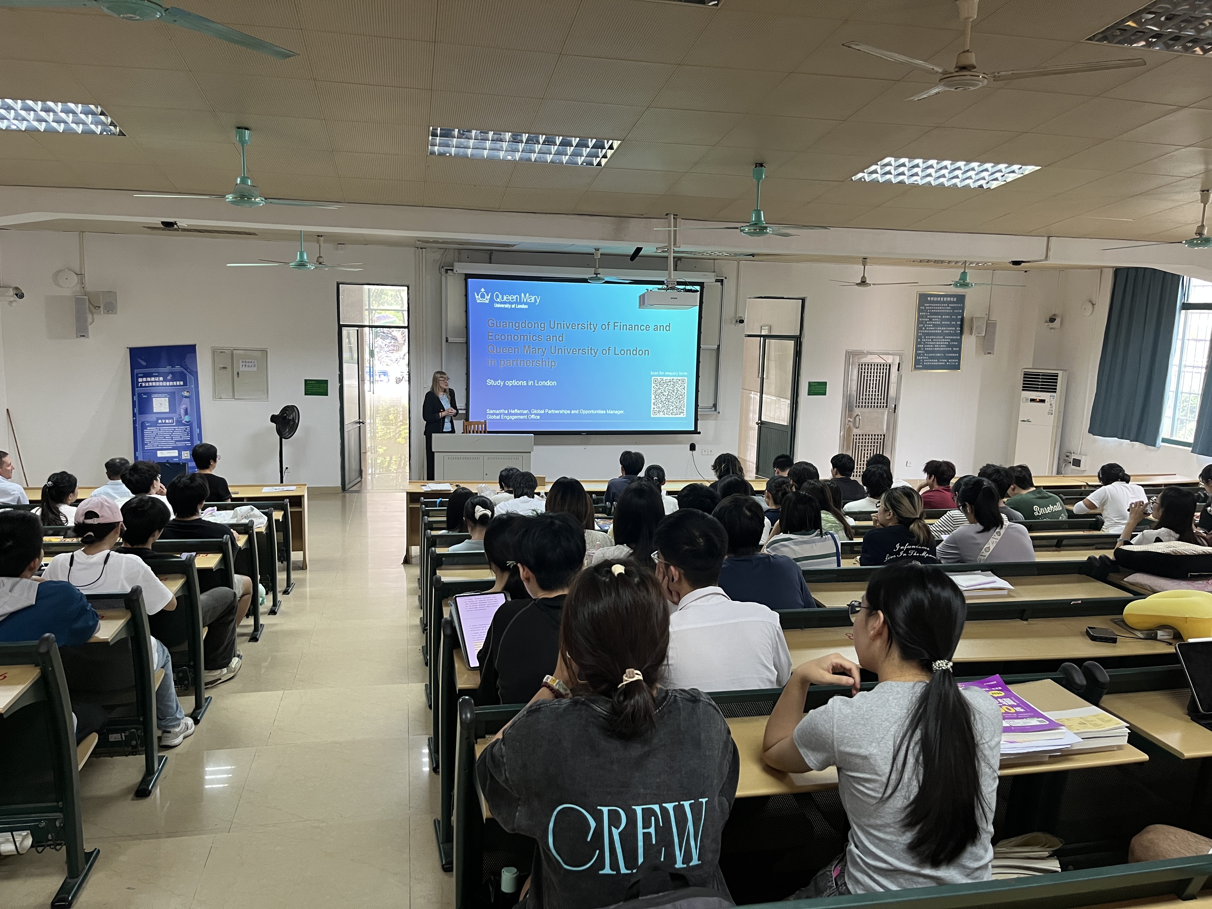 会后,Ceri Bevan一行在勤学楼为我校学生进行了4+1本升硕项目的宣讲,介绍了伦敦玛丽女王大学的概况、区位优势、硕士项目申请、学费减免政策等内容,现场互动气氛热烈。