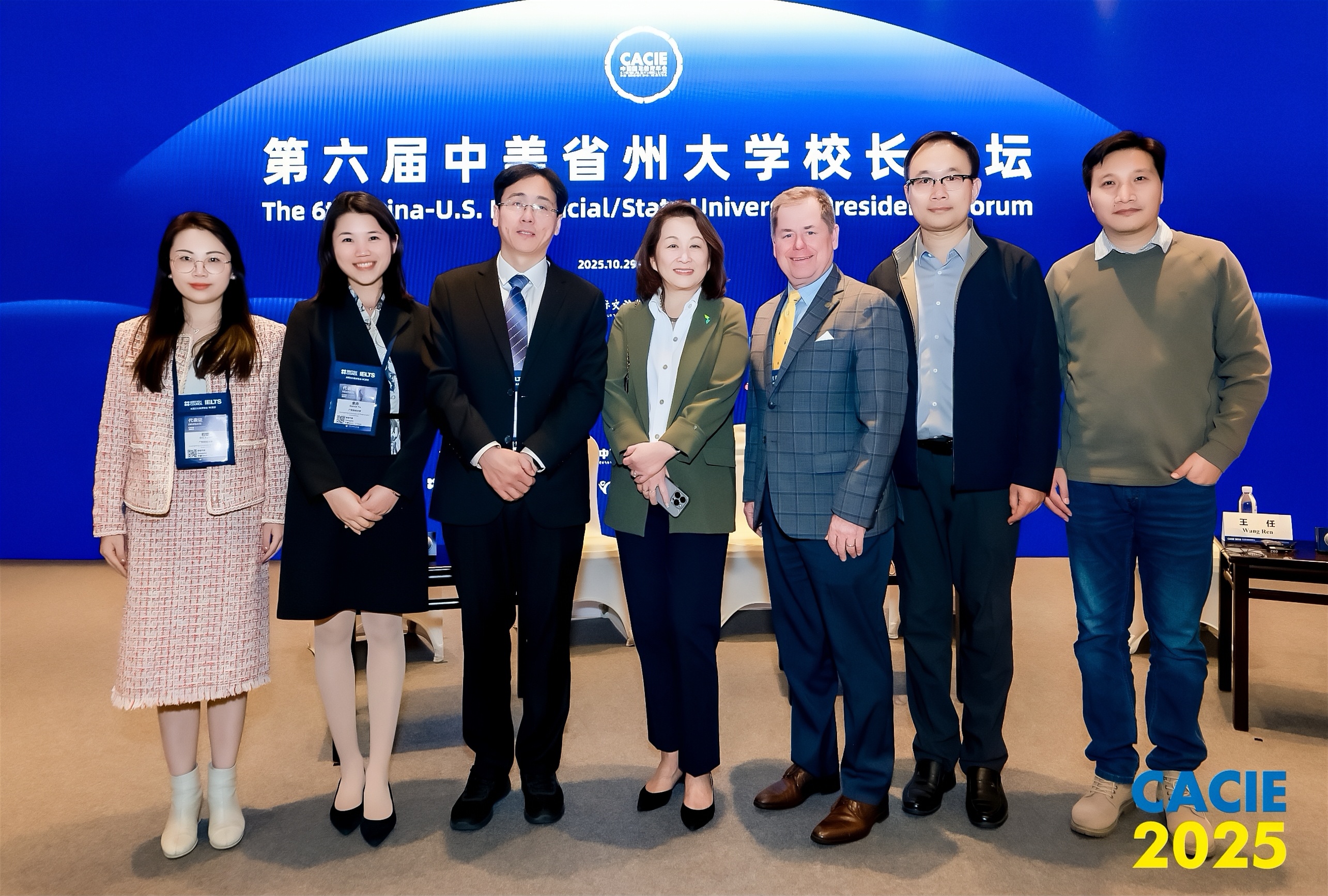 10月31日,由中国教育国际交流协会主办的第六届中美省州大学校长论坛在北京国家会议中心举办。中国教育国际交流协会会长刘利民、中国教育部国际合作与交流司副司长赵磊、美国州立大学与学院协会主席查尔斯·韦尔奇(Charles Welch)及70余所中美高校代表及相关领域人员出席论坛。我校副校长张凯应邀参会并主持相关主题圆桌会议。国际交流与合作部、科研部、国际商学院相关人员陪同参会。