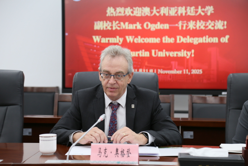 11月11日下午,澳大利亚科廷大学副校长马克·奥格登,科学与工程学院国际事务院长桑比特·达塔,电气工程、计算机与数学科学学院院长凯特·布鲁克斯,约翰·科廷杰出教授李凌,全球合作伙伴顾问萨巴·阿曼纽尔等一行来校访问。我校副校长张凯,国际交流与合作部、教务部、统计与数据科学学院相关人员会见来宾并参加座谈会。会议由张凯主持。