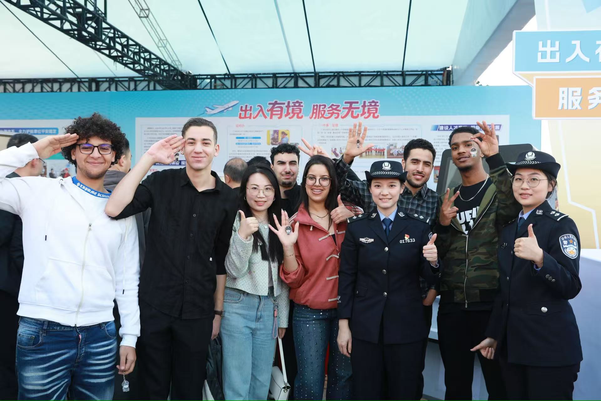 活动期间,国际学生在随队老师的带领下参观了公安装备展示区,听取现场民警对装备功能、应用场景进行详细讲解并观摩实操演示,还试穿装备。师生们还体验了出入境管理支队的数字化服务,听取了多个展台警员们关于反诈安全、经济侦查、网络诈骗、假货识别等不同主题的知识宣讲。